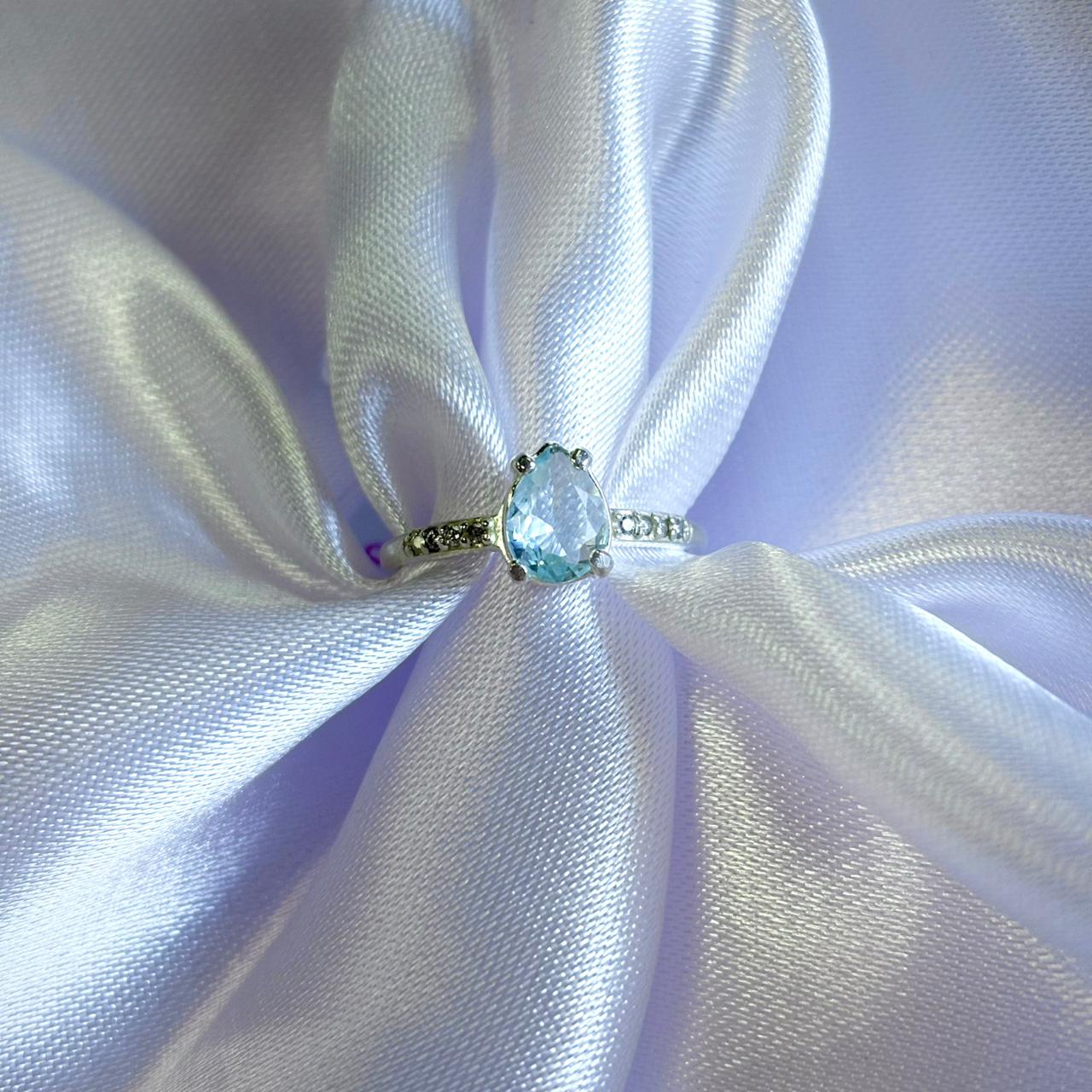 ANEL - SOLITARIO AZUL CLARO - PRATA 925