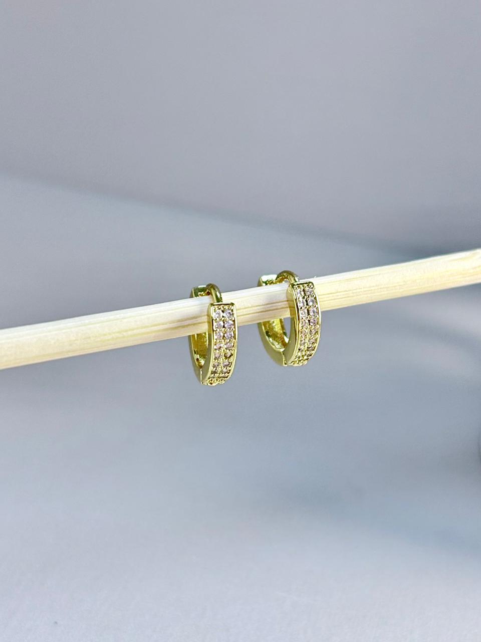 Argolinha click cravejada tamanho M semijoia, oferecendo brilho elegante, conforto e praticidade, ideal para uso diário.