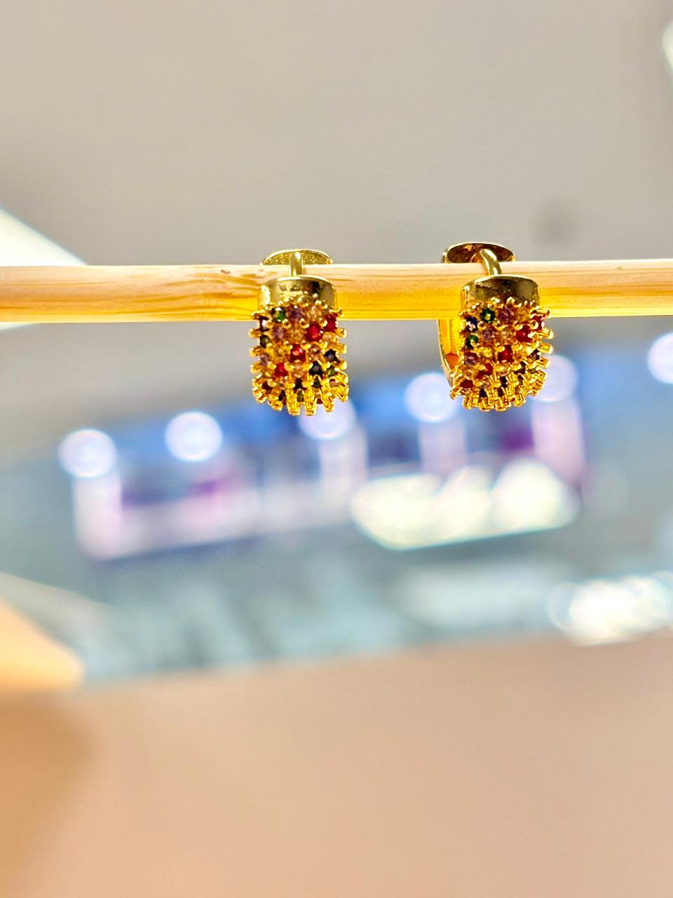 Argolinha cravejada color semijoia, trazendo um visual moderno, alegre e delicado, com pedras coloridas que garantem charme e destaque em produções femininas.