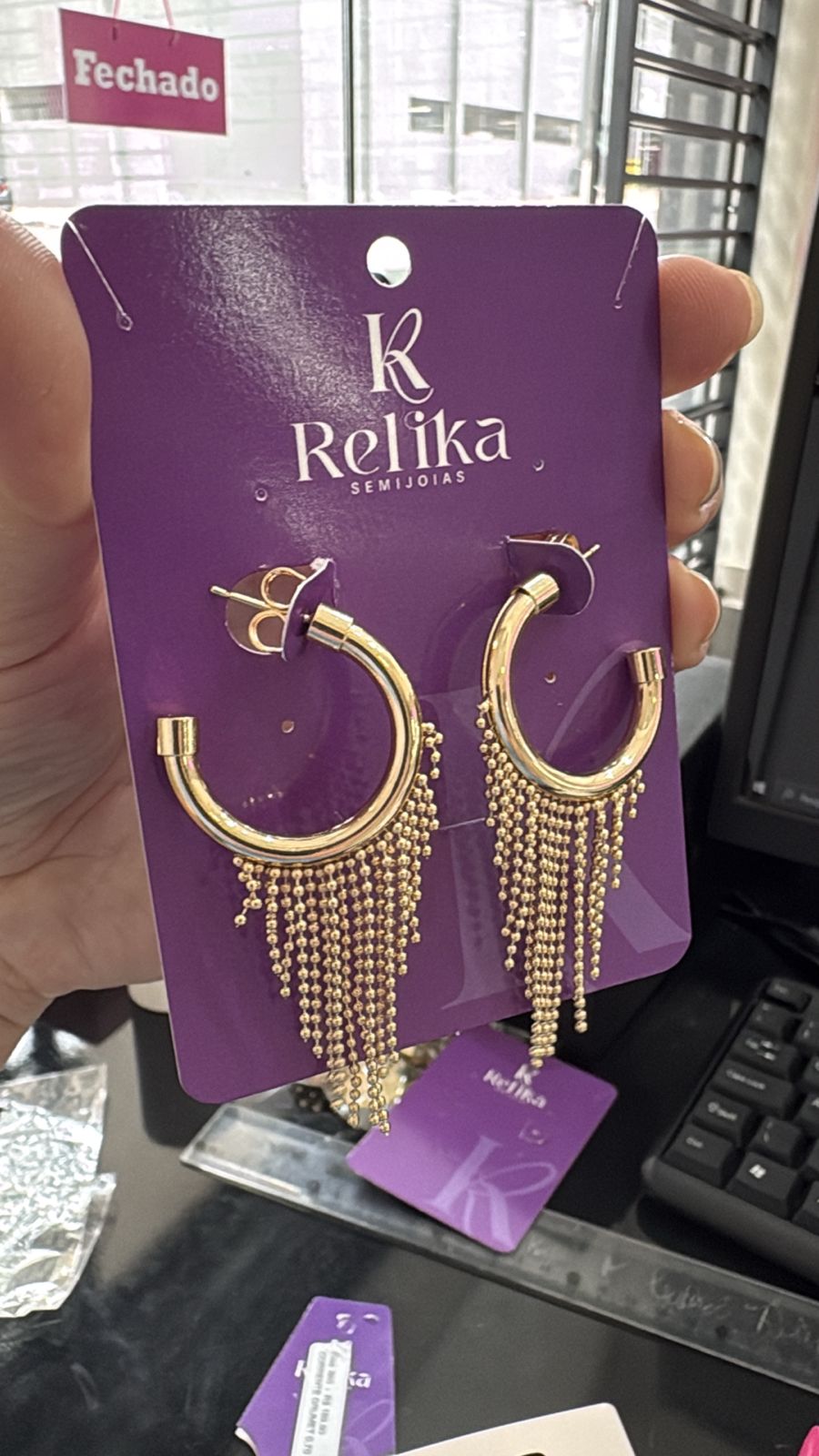 Brinco argola com franja semijoia, apresentando um visual moderno, elegante e cheio de movimento, ideal para looks marcantes.