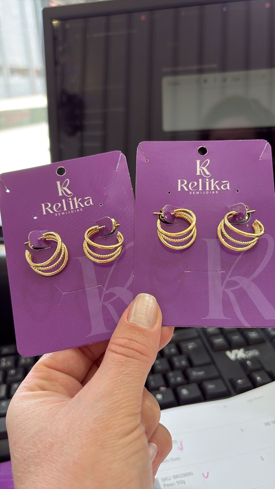 BRINCO ARGOLA TRIPLA TARRAXA - SEMIJOIA