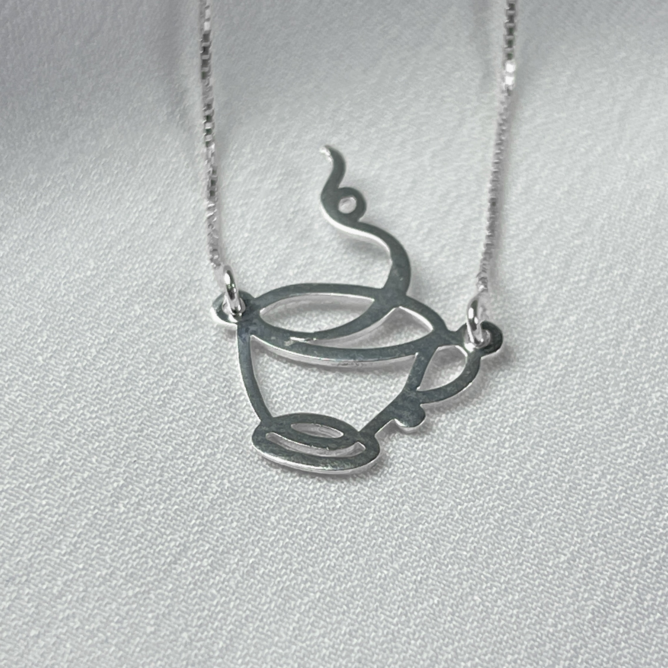 Colar pingente café em Prata 925, design criativo e moderno para amantes de café que buscam um acessório diferenciado.