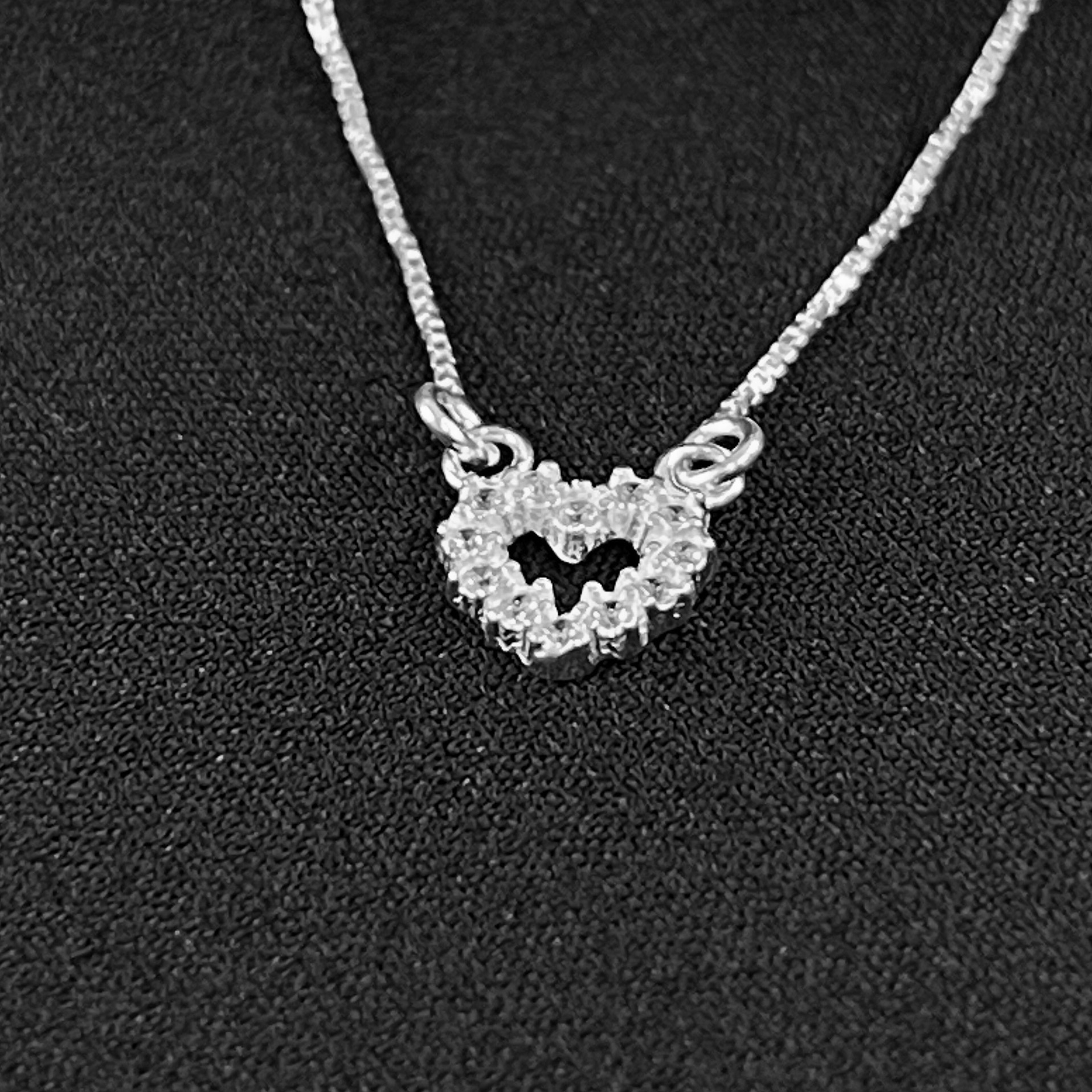 Colar pingente coração cravejado em Prata 925, joia romântica e clássica com brilho intenso e acabamento premium.