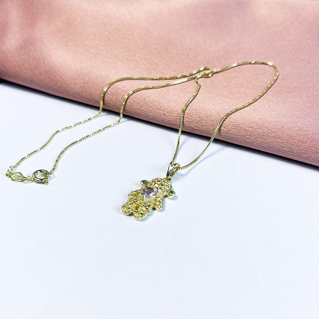 Colar Ted cravejado, semijoia charmosa e moderna, com pedras que realçam o brilho da peça, ideal para quem busca um acessório criativo e sofisticado.