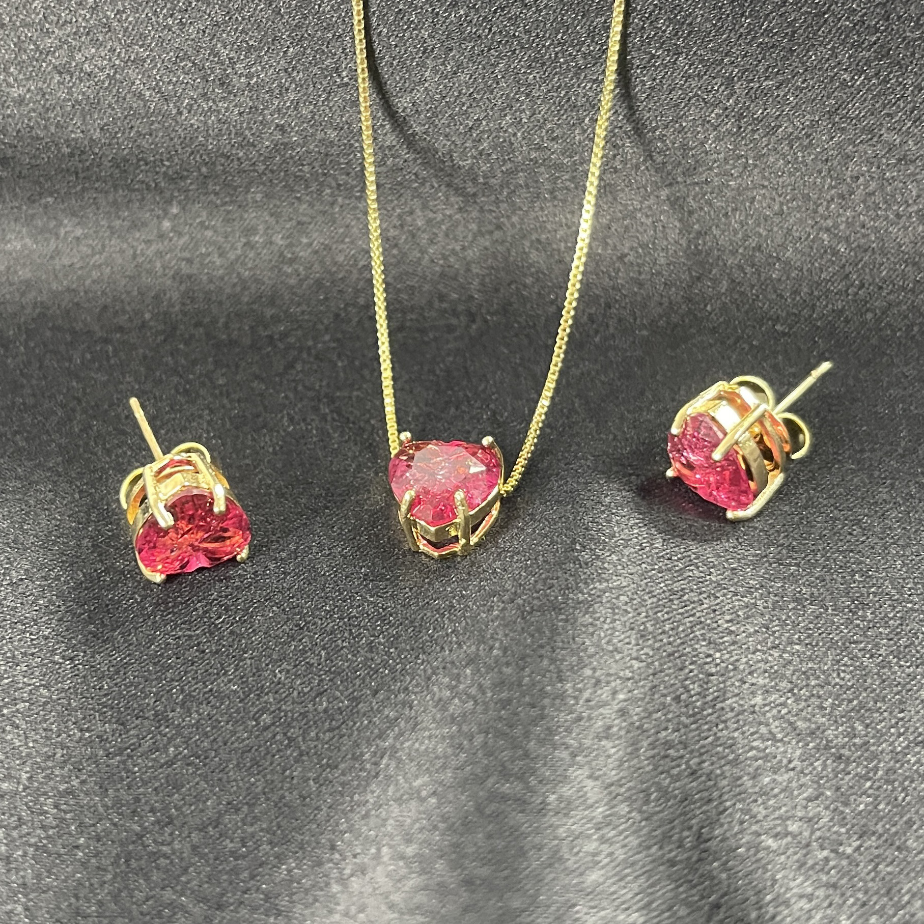 CONJUNTO CORAÇÃO CRISTAL VERMELHO - SEMIJOIA
