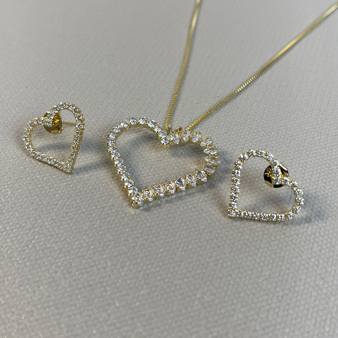 CONJUNTO CORAÇÃO ZIRCONIA - SEMIJOIA
