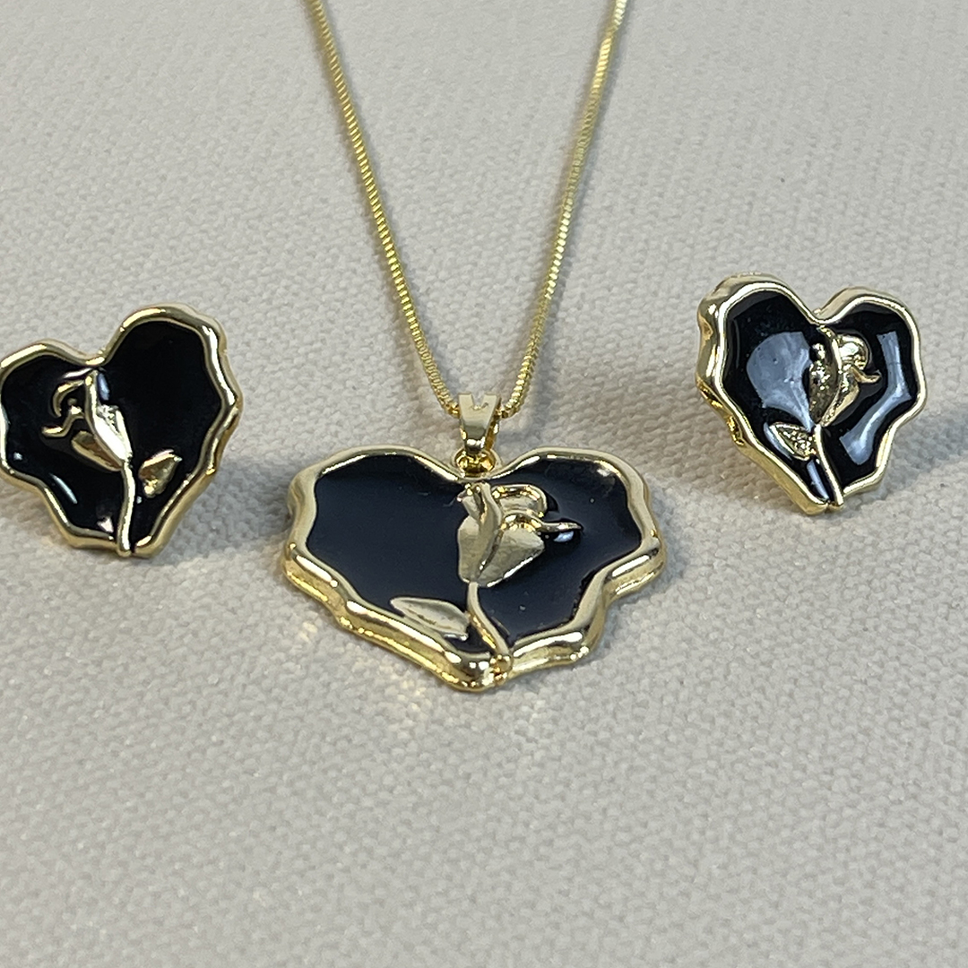 CONJUNTO FLOR CRAVEJADA ROSA - SEMIJOIA