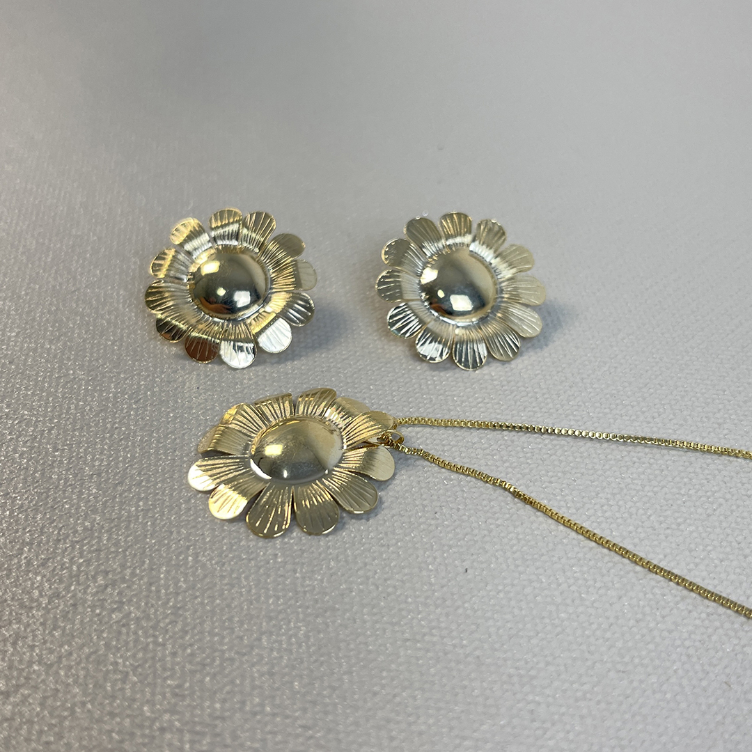 CONJUNTO GIRASSOL NO DOURADO - SEMIJOIA