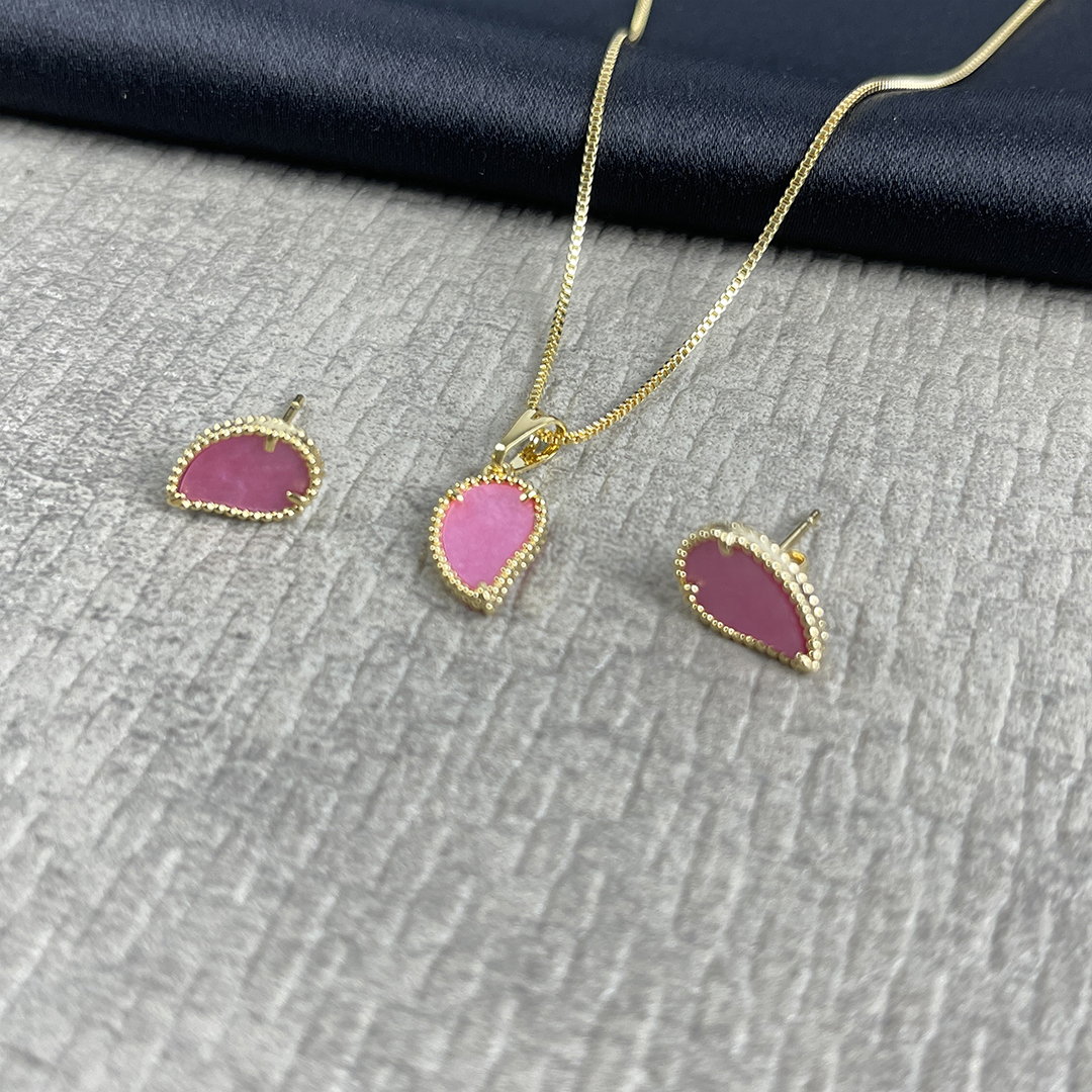 CONJUNTO GOTA CINTILIANTE ROSA - SEMIJOIA