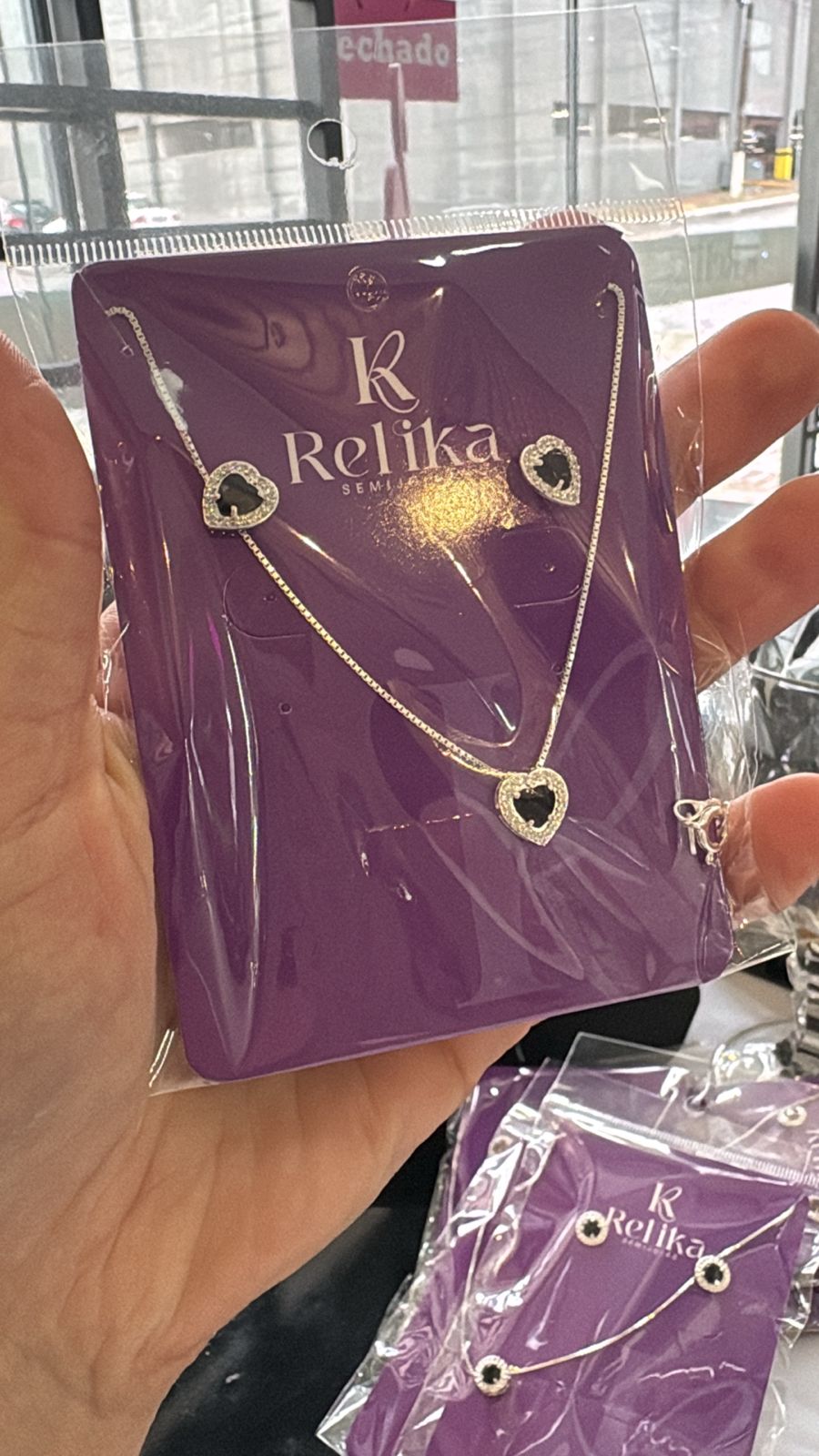 CONJUNTO PONTO DE LUZ CORAÇÃO LUXO PRETO - PRATA 925