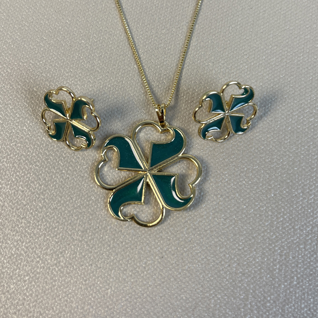 CONJUNTO TREVO VERDE - SEMIJOIA