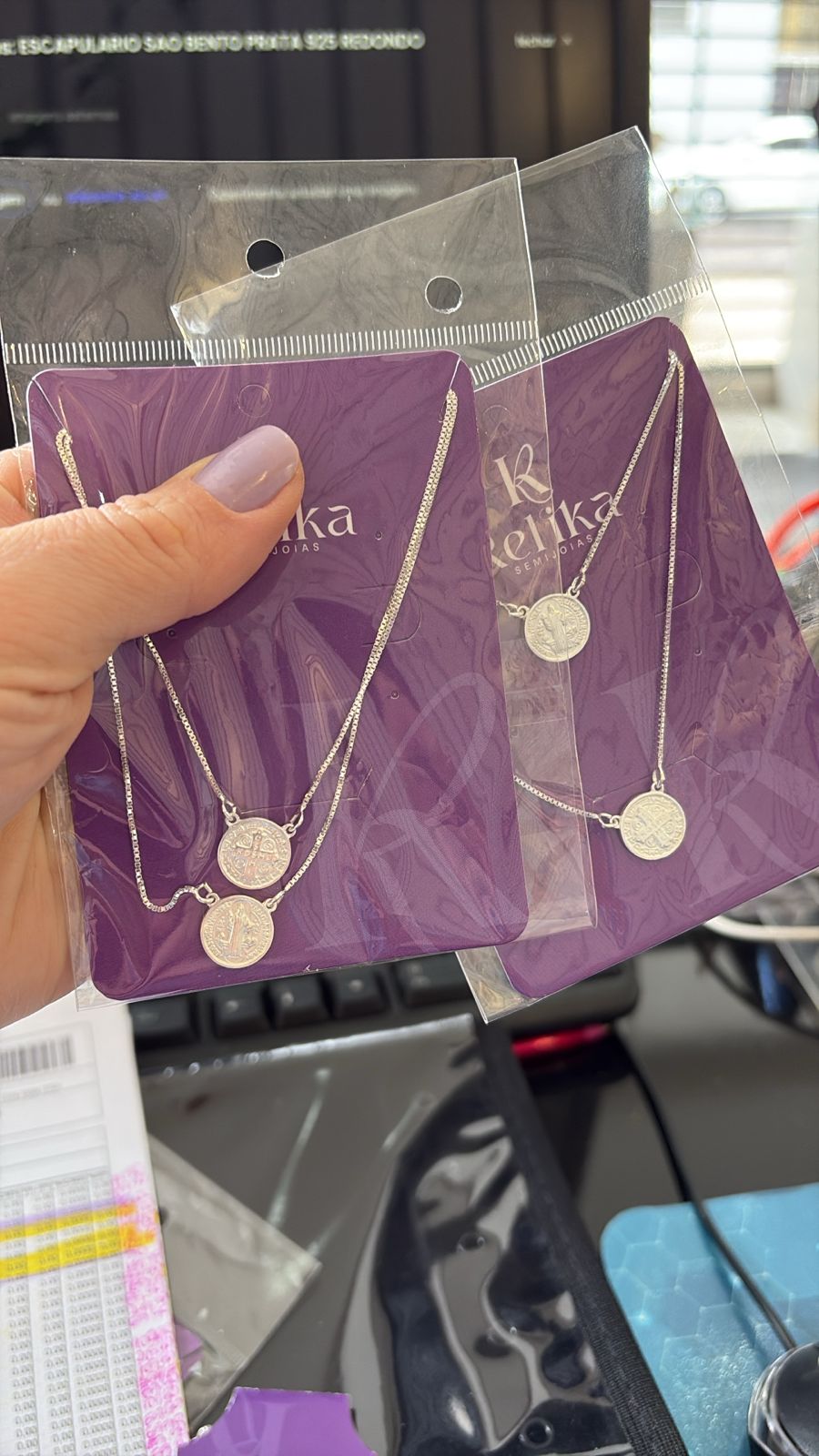 ESCAPULARIO SAO BENTO REDONDO - PRATA 925