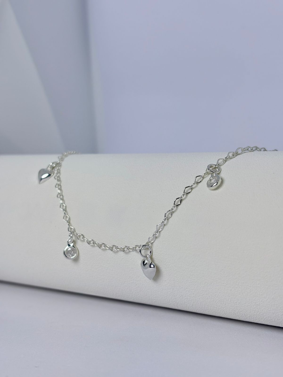 PULSEIRA CORAÇÕES E ZIRCONIA - PRATA 925