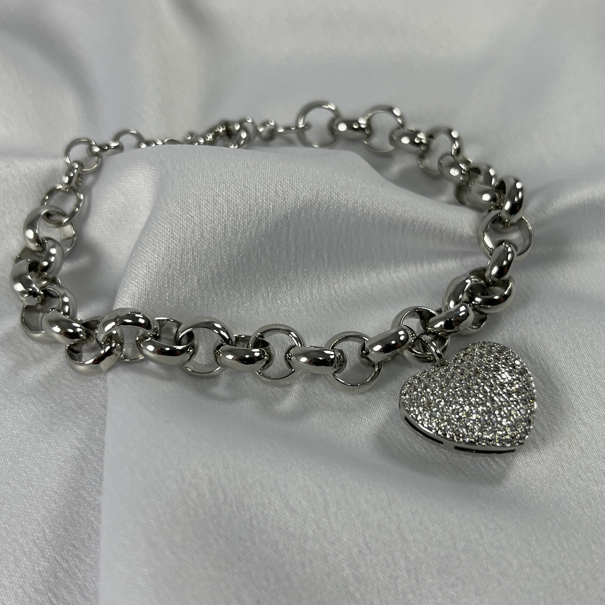 PULSEIRA ELOS BERLOQUE COM CORAÇÃO CRAVEJADO - PRATA 925