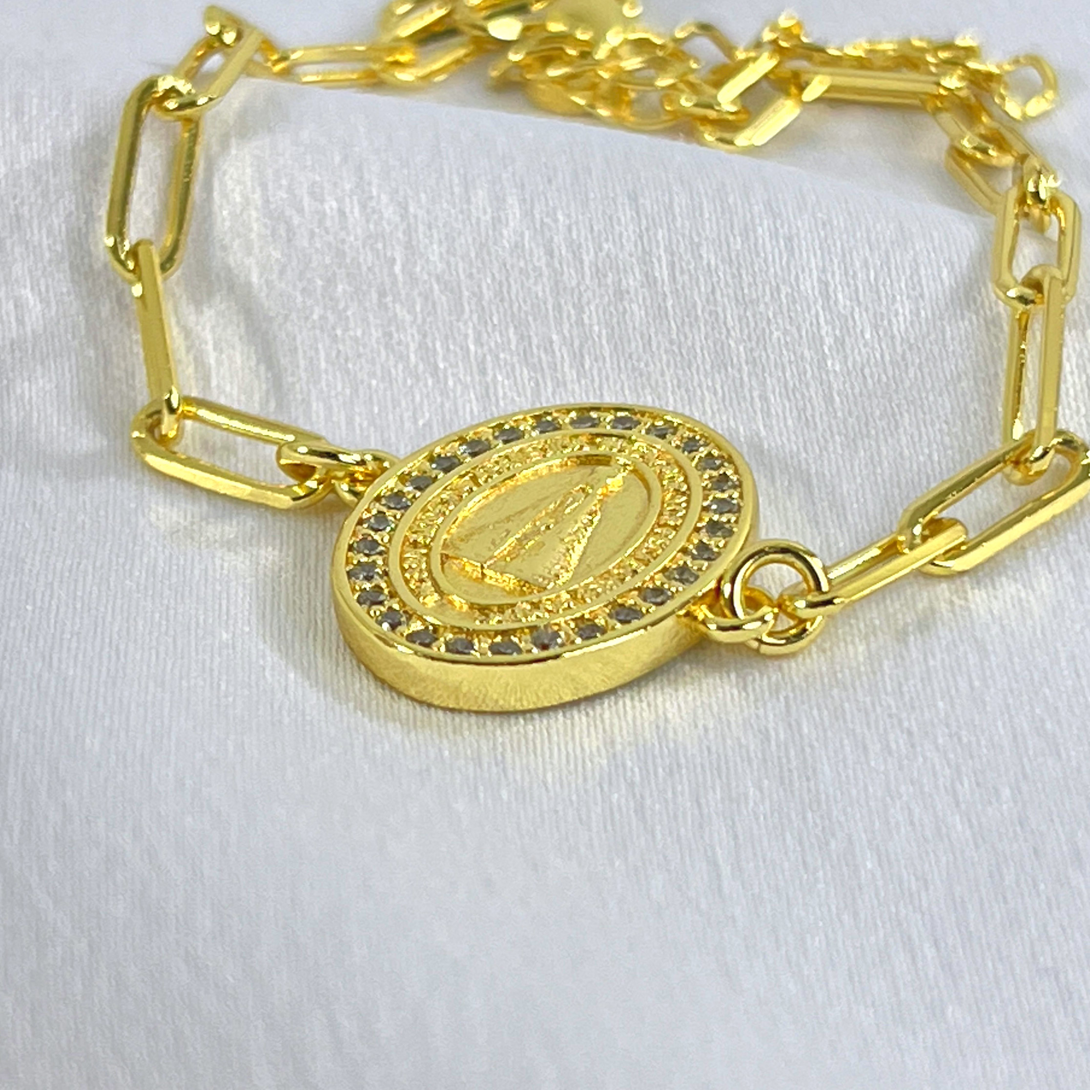 PULSEIRA ELOS CARTIER NOSSA SENHORA AP CRAVEJADA NO DOURADO - SEMIJOIA