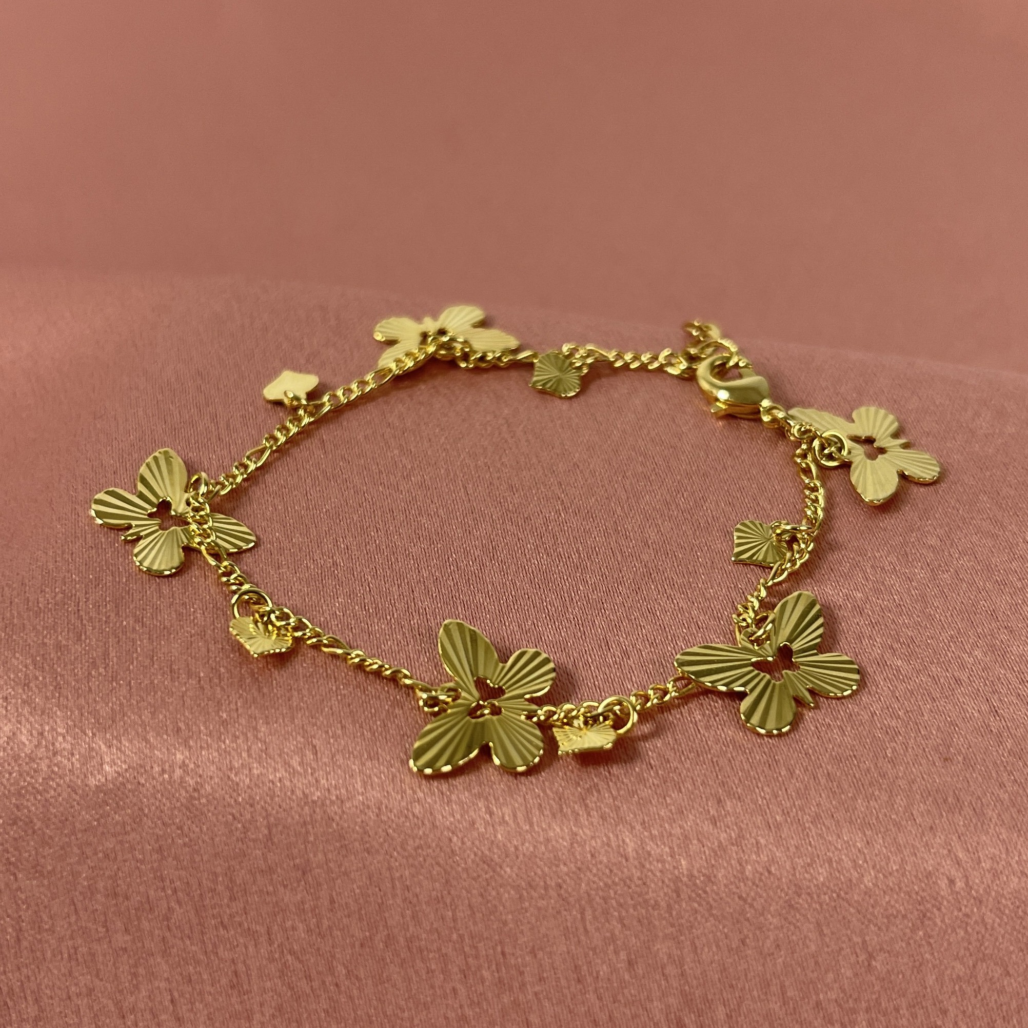 PULSEIRA ELOS COM BORBOLETAS E CORAÇÕES NO DOURADO - SEMIJOIA
