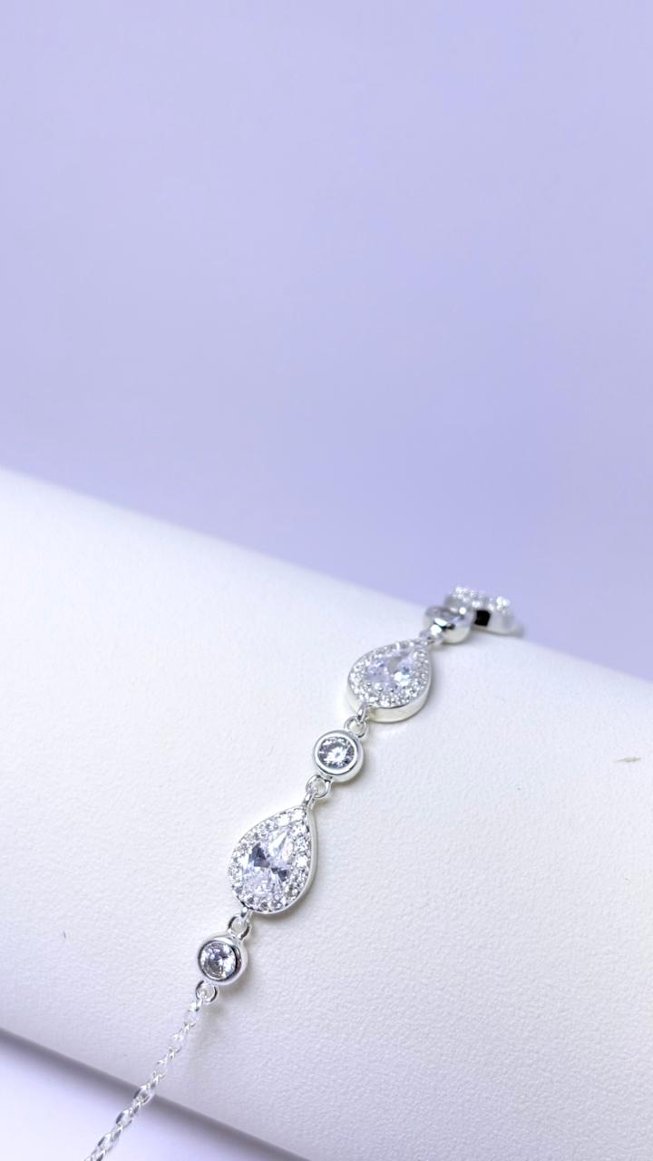 PULSEIRA GOTAS CRISTAL CRAVEJADA - PRATA 925