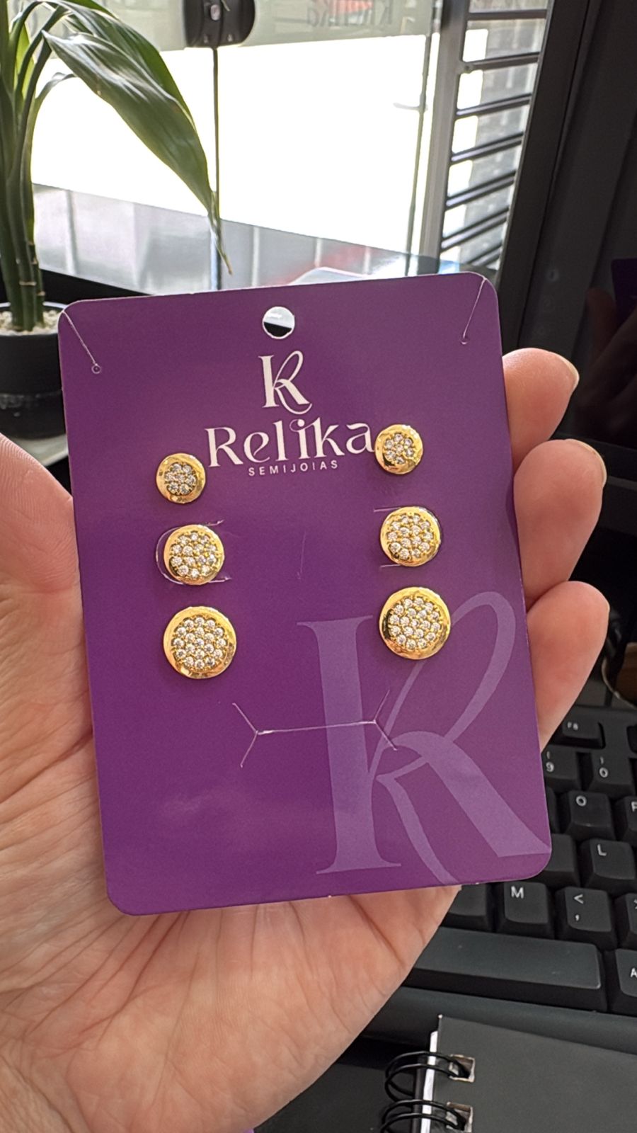TRIO BRINCOS CRAVEJADOS - DOURADO